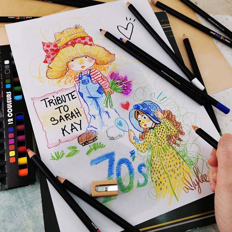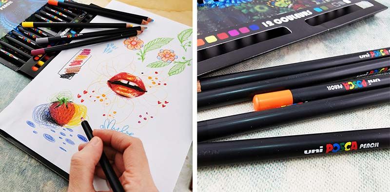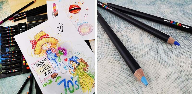 Today, I’m sharing my favourite, easy to use tool. I love Posca Coloured Pencils, which glide nicely over the paper. I advise you to try them!