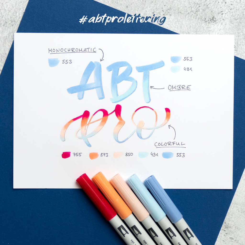 Practice your lettering skills with ABT Pro, the alcohol-based dual brush pens.