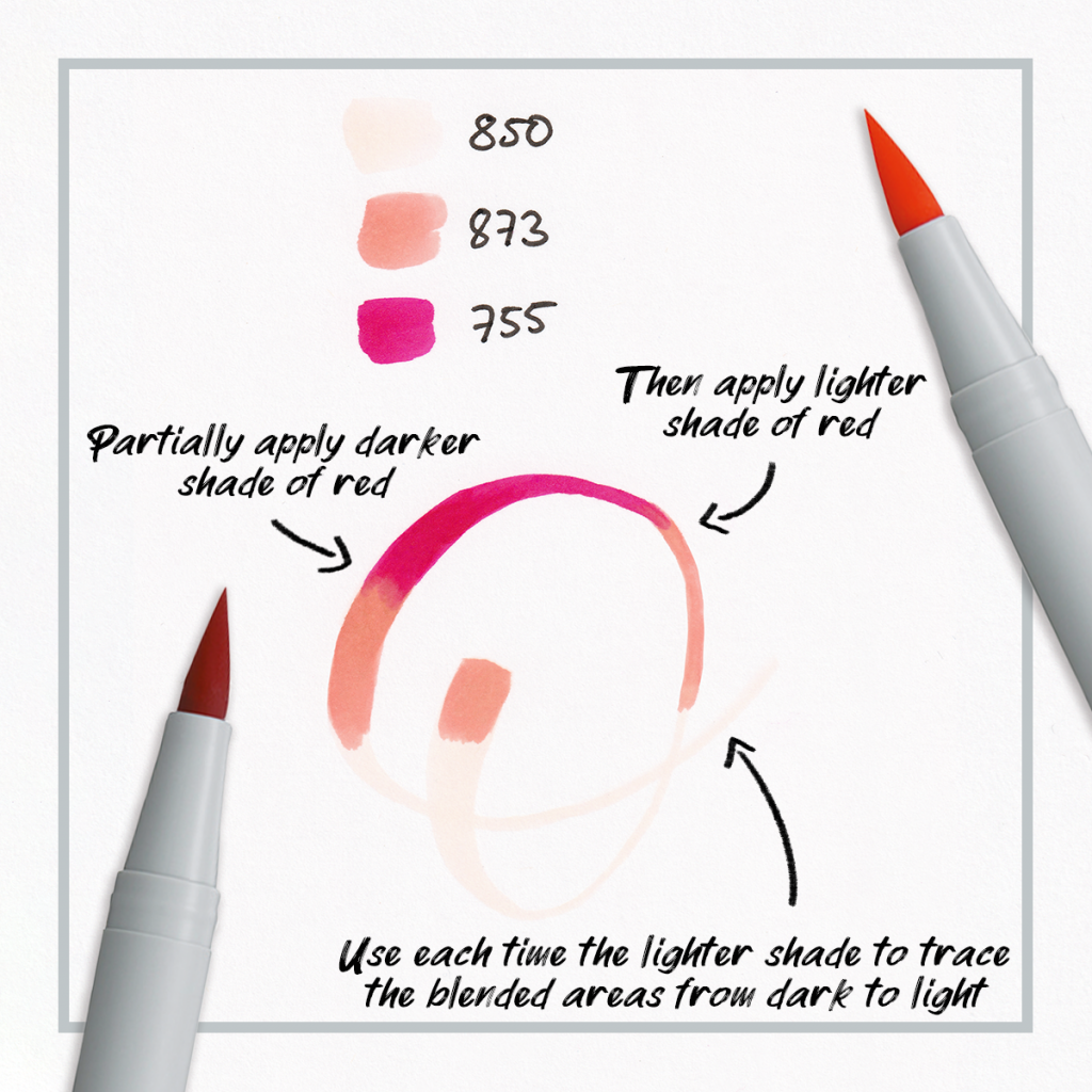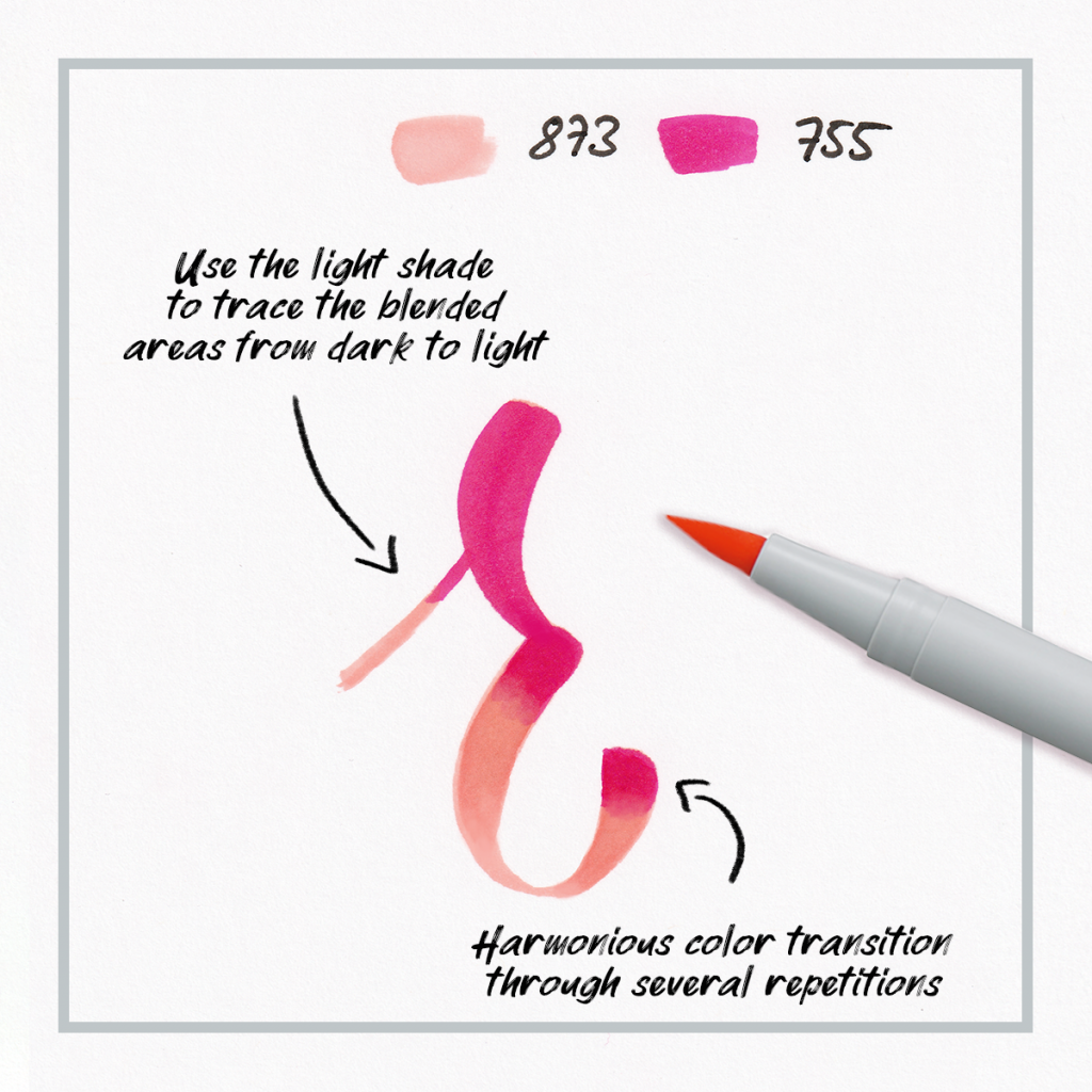 Create colour transitions with this ink without using any water or an additional blender pen. These alcohol-based brush pens, have the advantage that the original colour is not lightened as it is with water-soluble inks.